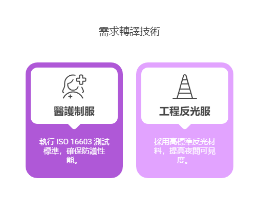 · 無塵車間管控:生產環境符合 ISO 14644-1 Class 8 級潔淨度,確保醫護、食品業制服無微生物污染。