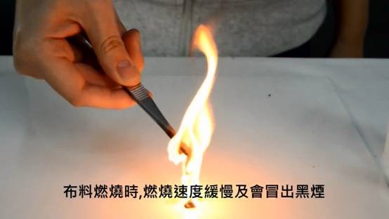 3,布料燃燒時,燃燒速度緩慢及會冒出黑煙
