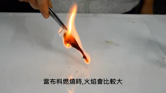 2,當布料靠近火焰時,布料不會收縮及溶化
