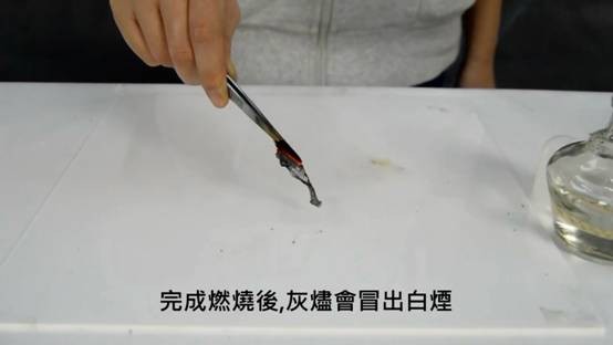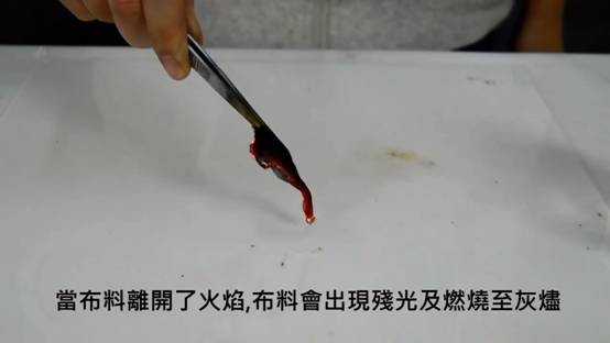 4,當布料離開了火焰,布料會出現殘光及燃燒至灰燼