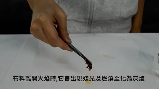 4,布料離開火焰時,它會出現殘光及燃燒至化為灰燼