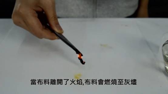 4,當布料離開了火焰,布料會燃燒至灰燼