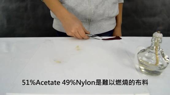 1,51%Acetate 49%Nylon是難以燃燒的布料