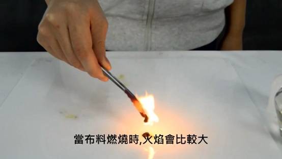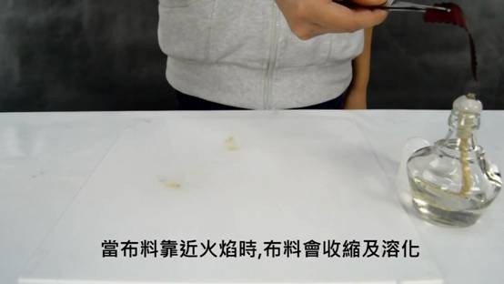 2,當布料靠近火焰時,布料會收縮及溶化