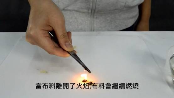 4,當布料離開了火焰,布料會繼續燃燒