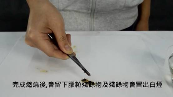 5,完成燃燒後,會留下膠粒殘餘物及殘餘物會冒出白煙
