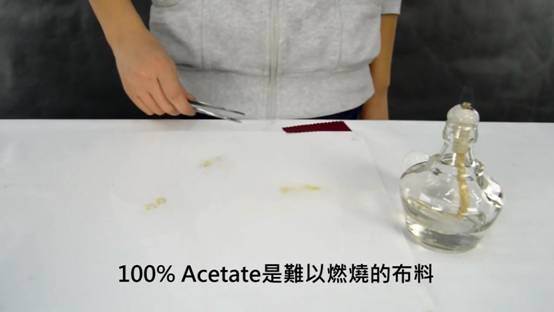如何分辨布料材質方法 100etate料燃燒測試 100etate布會燒著會快速收縮火焰較大 燃燒殘餘為粒狀會冒白煙 100%Aetate @iGift.hk