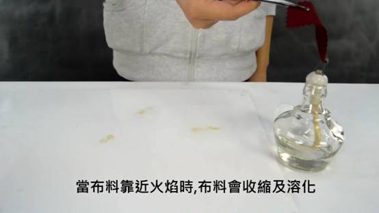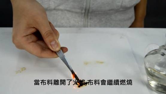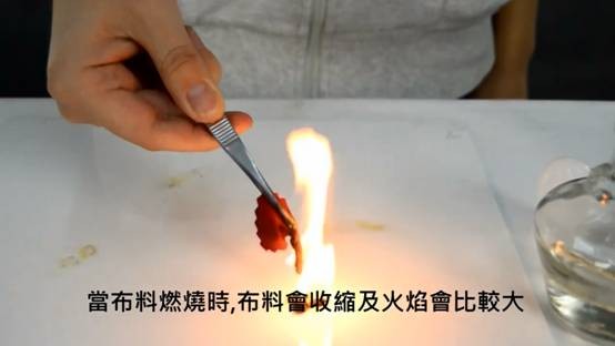 3,當布料燃燒時,布料會收縮及火焰會比較大