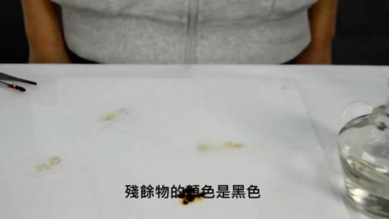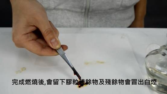 5,完成燃燒後,會留下膠粒殘餘物及殘餘物會冒出白煙