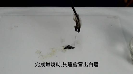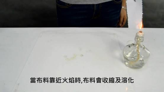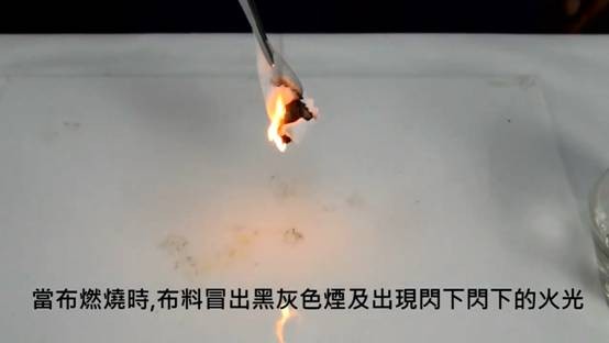 3,當布料燃燒時,布料冒出黑灰色煙及出現閃下閃下的的火光
