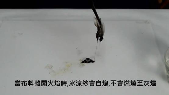 4,當布料離開火焰時,冰涼紗會自熄,不會燃燒至灰燼