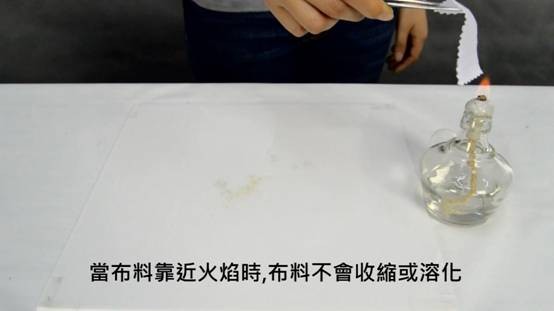 2,當布料靠近火焰時,布料不會收縮或溶化