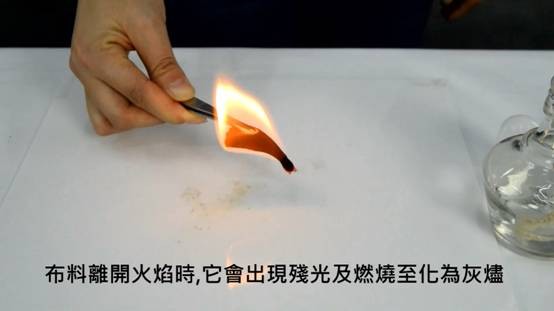 4,布料離開火焰時,它會出現殘光及燃燒至化為灰燼