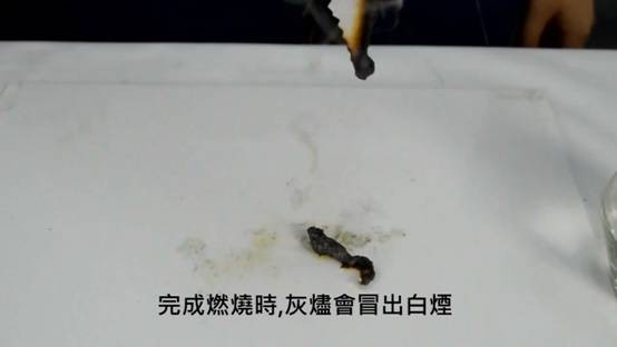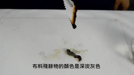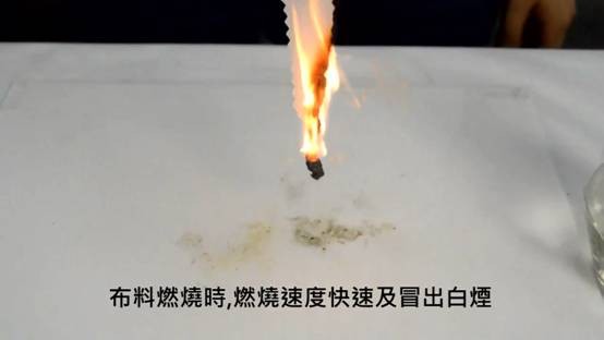 3,布料燃燒時,燃燒速度快速及冒出白煙
