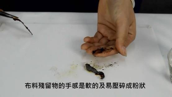 7,布料殘留物的手感是軟的及易壓碎成粉狀