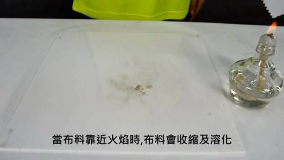 2,當布褲靠近火焰時,布料會收縮及溶化