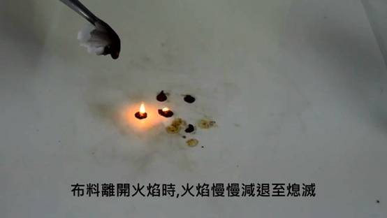 4,布料離開火焰時,火焰慢慢減退至熄滅