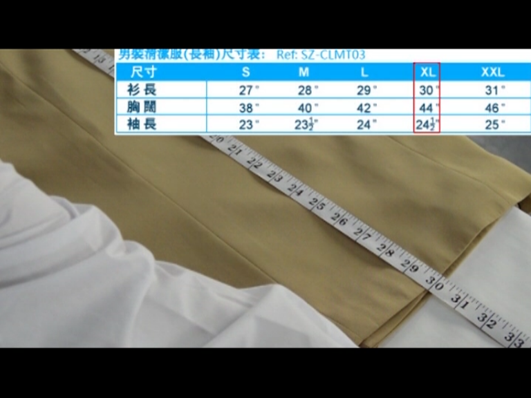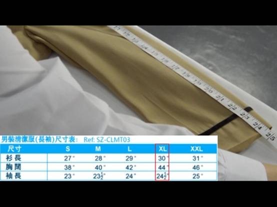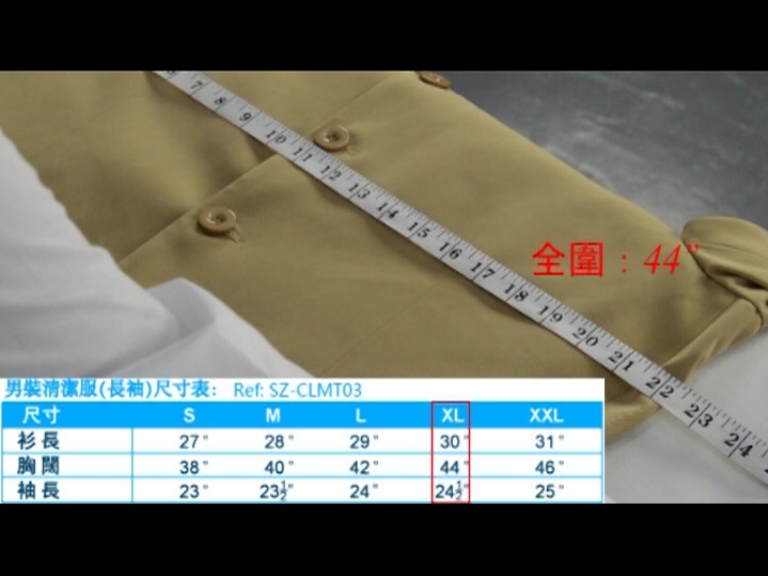 1. 男裝清潔服一般需要三個數據,衫長,胸闊和袖長