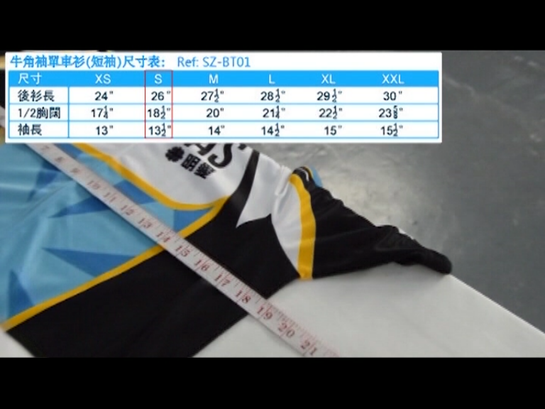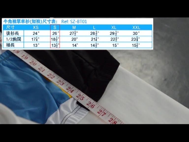 1. 單車衫一般需要三個數據,後衫長,1/2胸闊和袖長