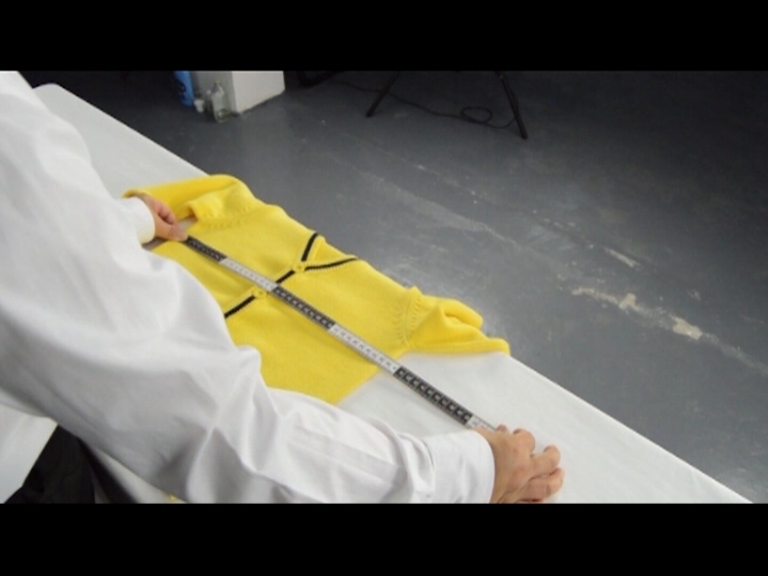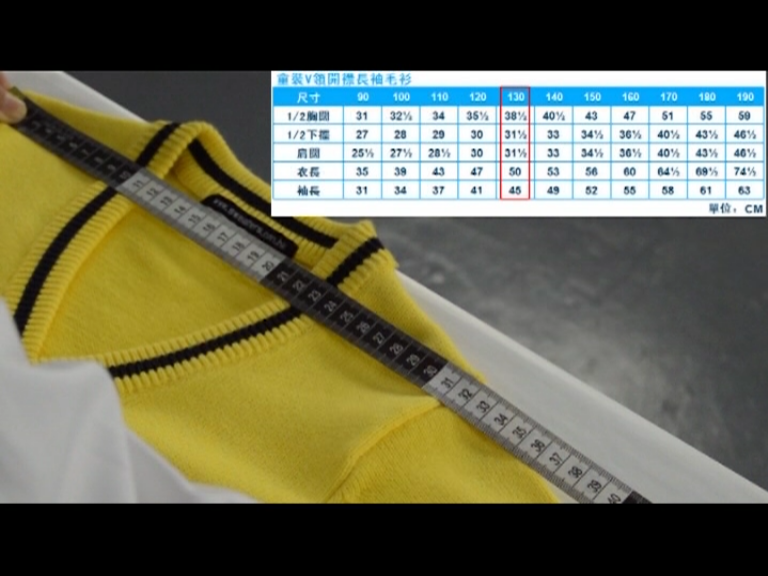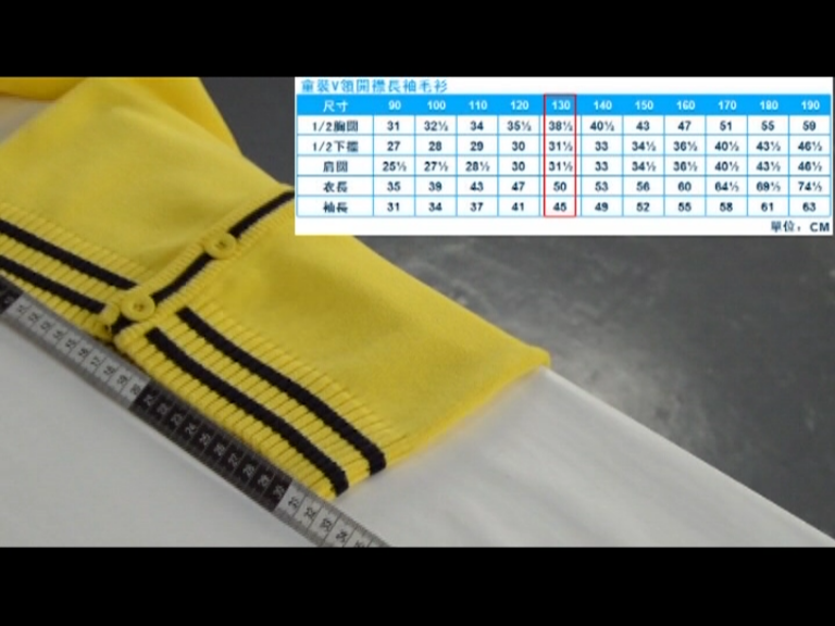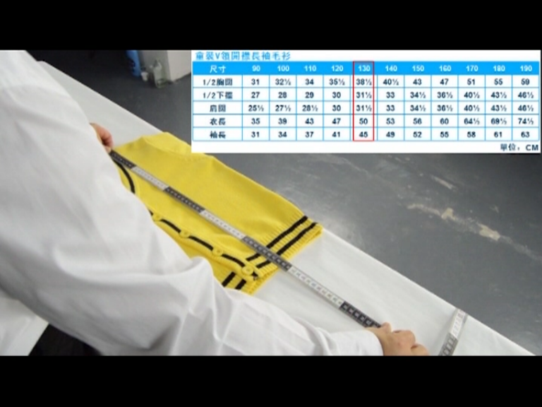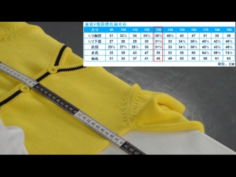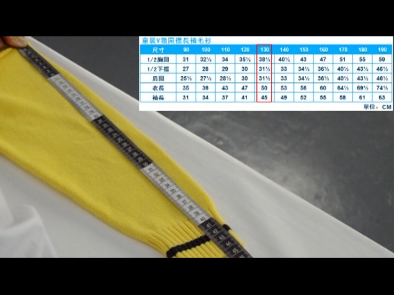 從毛衫胸前腋下開始量起,將尺拉直量度