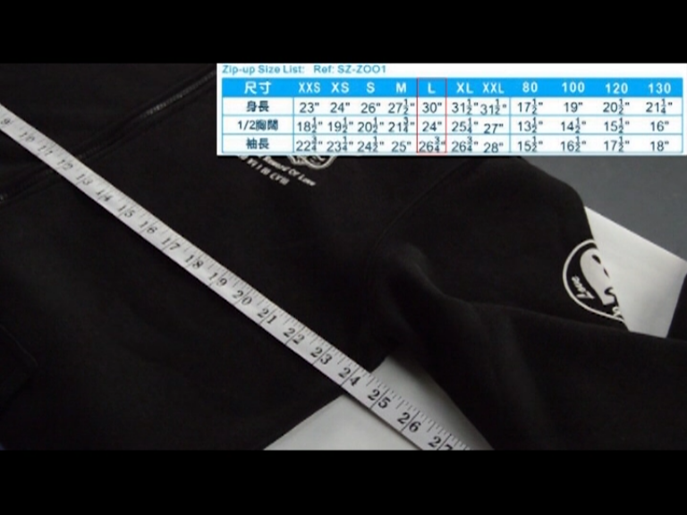 如何量度開胸衛衣尺寸 點量開胸衛衣尺寸