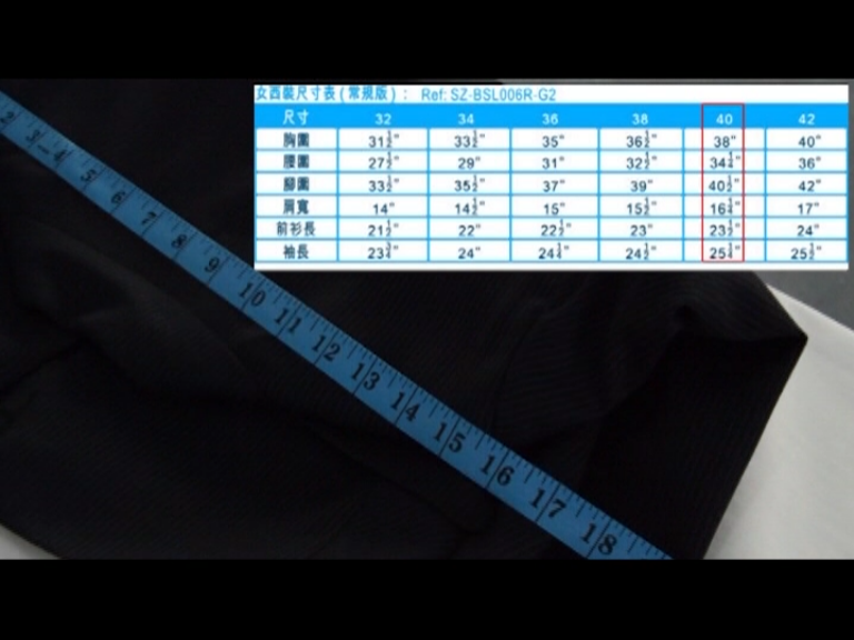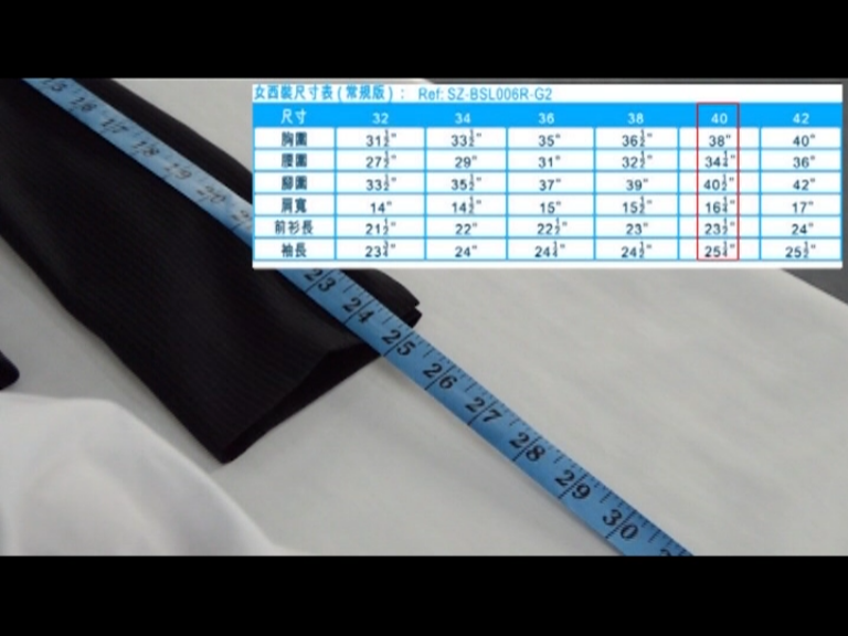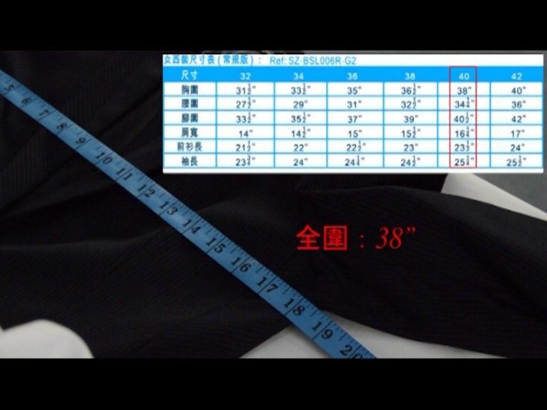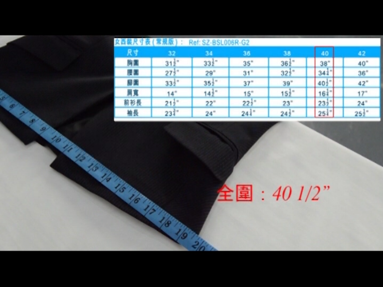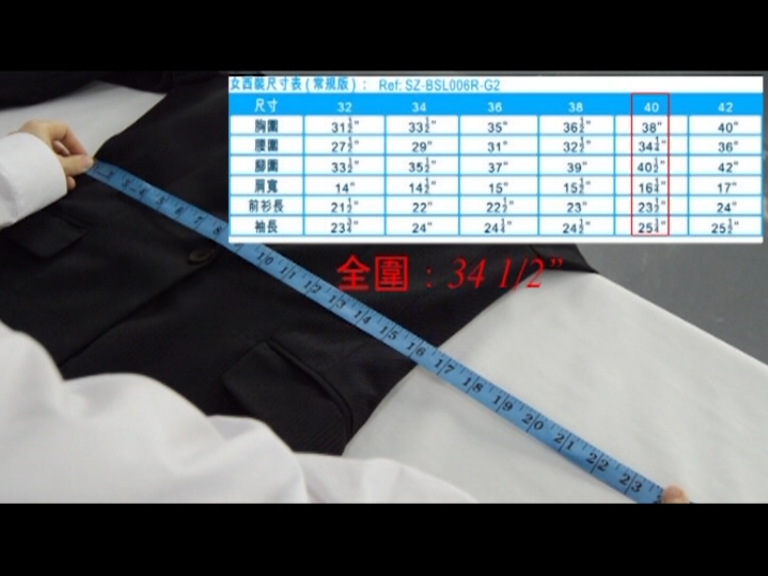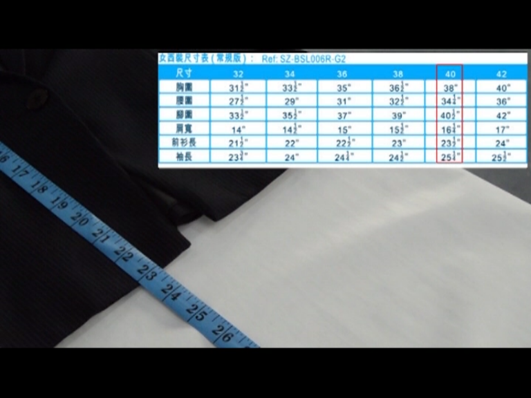1. 女西裝一般需要六個數據,胸圍,腰圍,腳圍,肩寬,前衫長,袖長