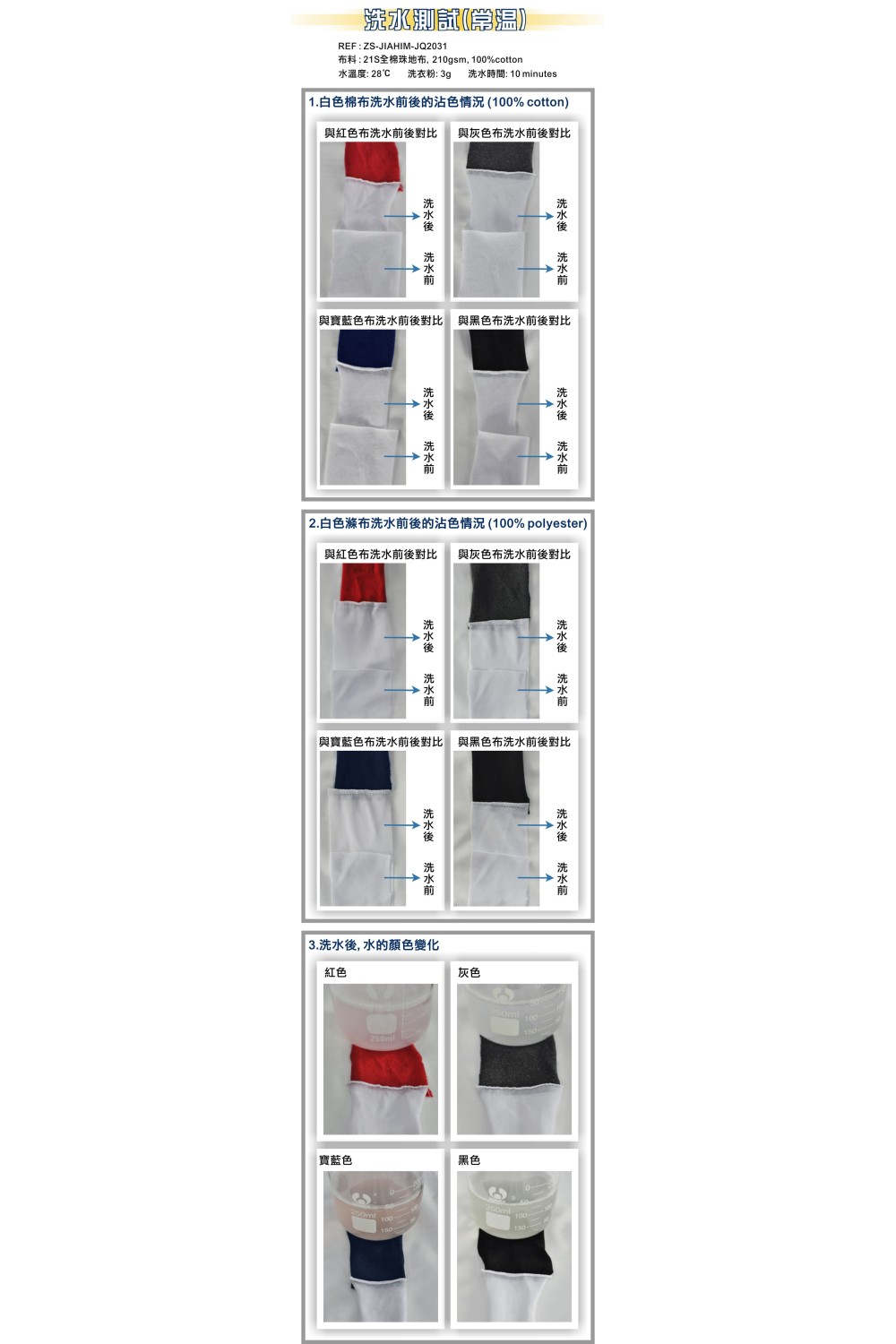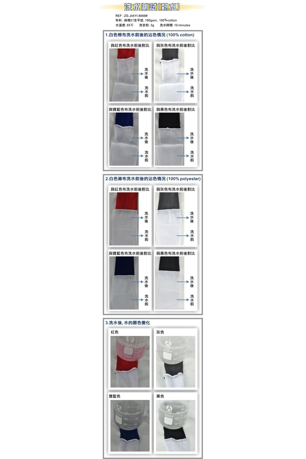洗水測試(常溫) REF:ZS-JIAYI-8068# 純棉21支平紋 180gsm 100%cotton