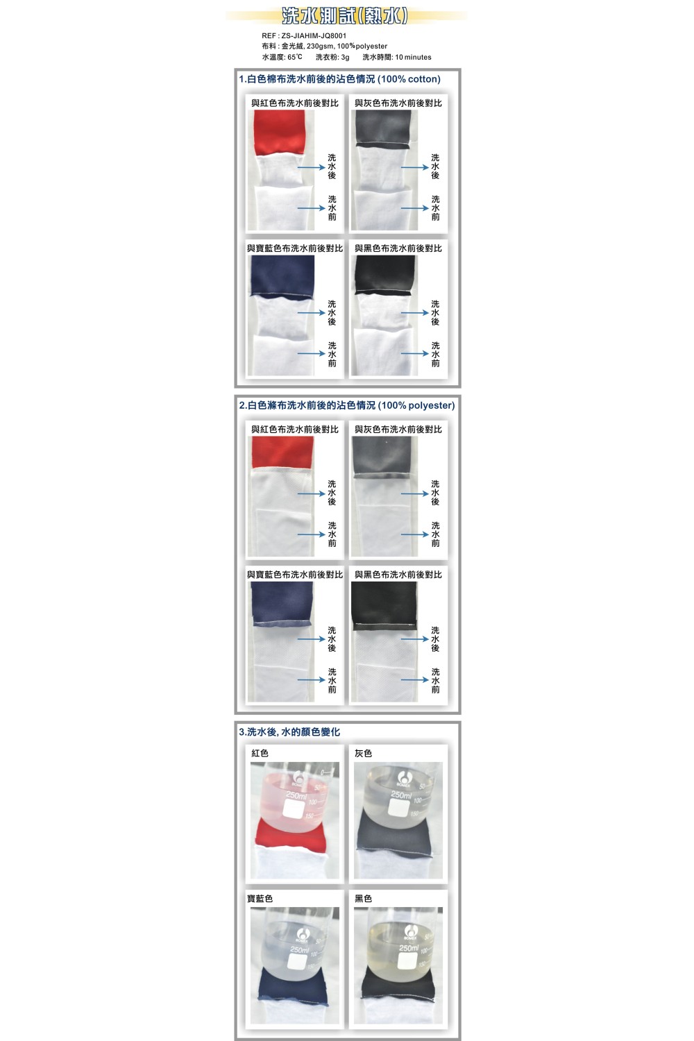 洗水測試(熱水) REF:ZS-JIAHIM-JQ8001 金光絨 230gsm 100%polyester