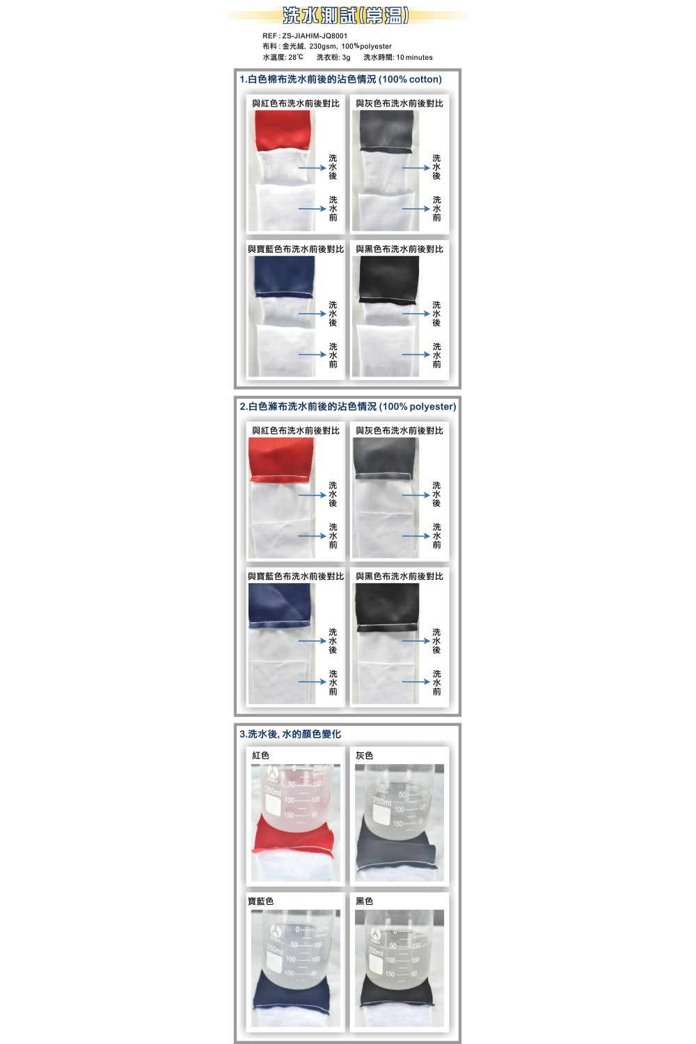 洗水測試(常溫) REF:ZS-JIAHIM-JQ8001 金光絨 230gsm 100%polyester