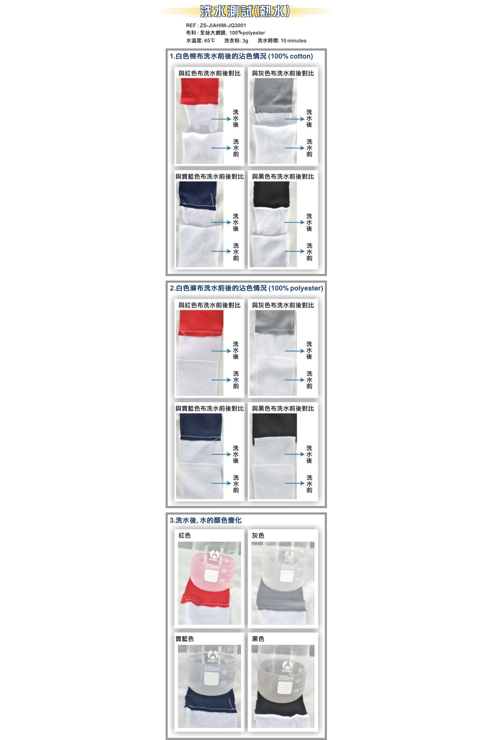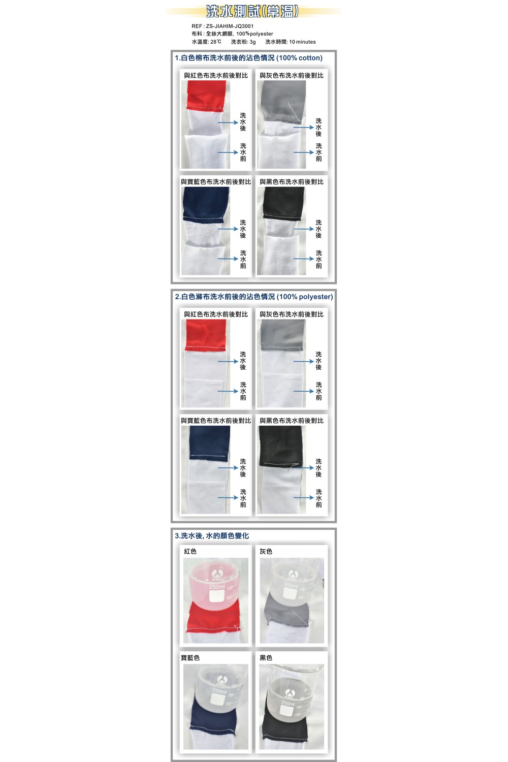 洗水測試(常溫) REF:ZS-JIAHIM-JQ3001 全絲大網眼,100%polyester