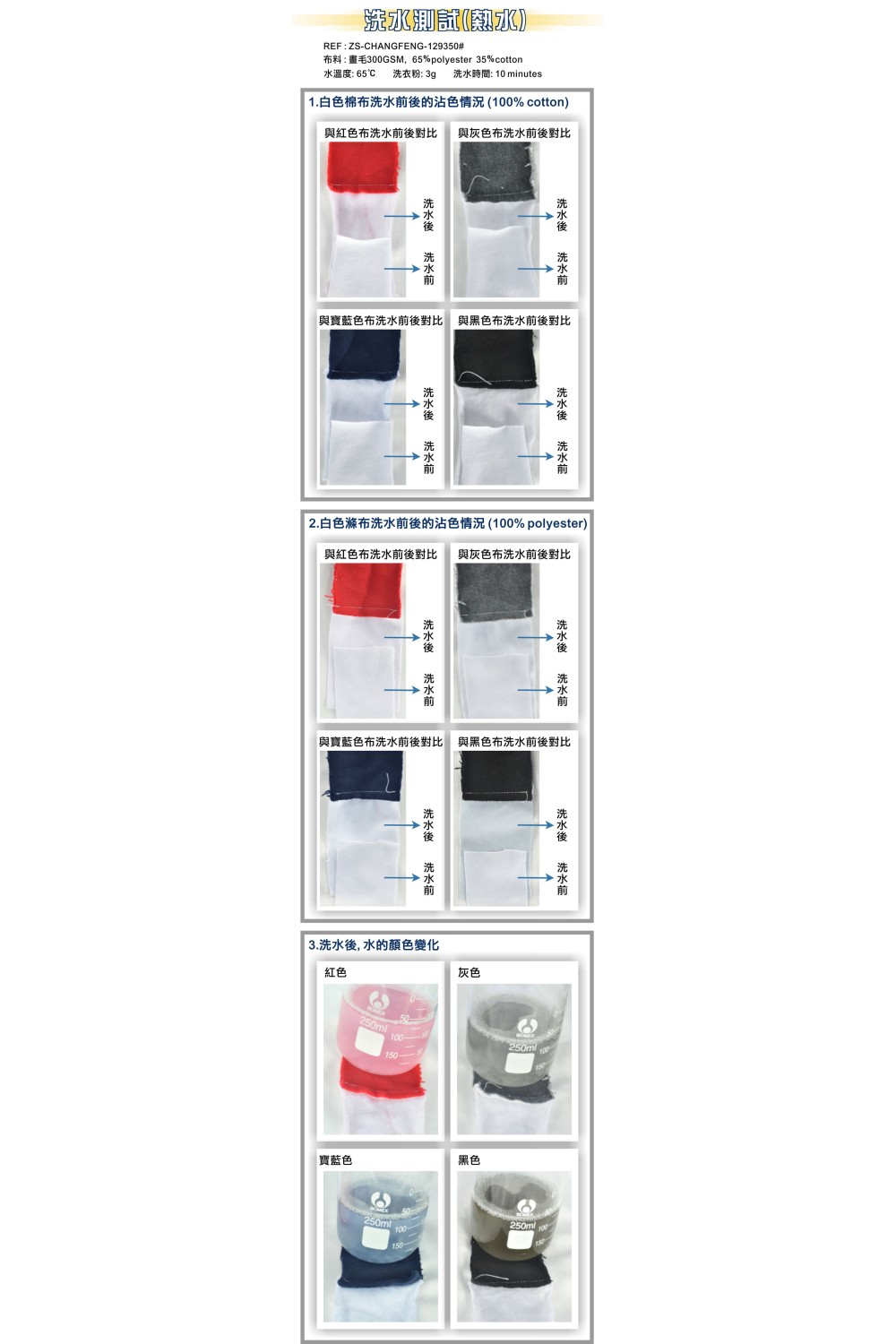洗水測試(熱水) REF:ZS-CHANGFENG-129350# 畫毛300GSM,65%polyester 35%cotton