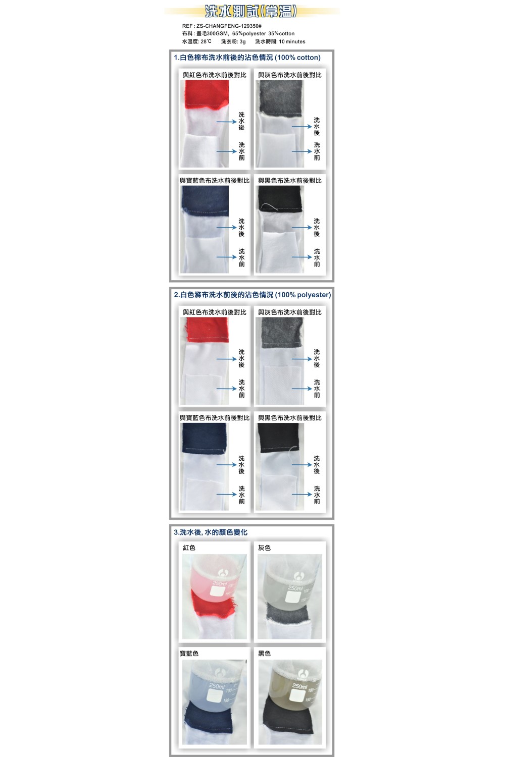 洗水測試(常溫) REF:ZS-CHANGFENG-129350# 畫毛300GSM,65%polyester 35%cotton