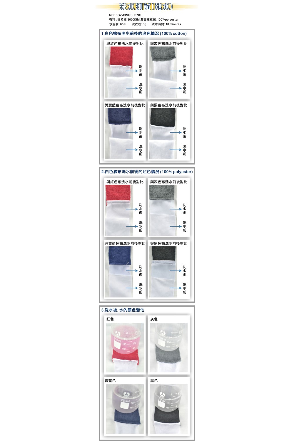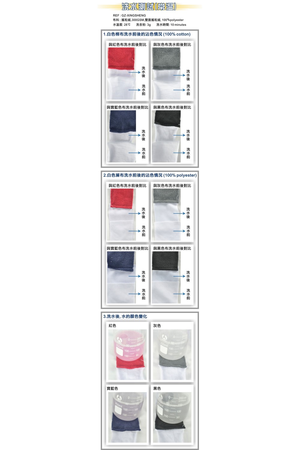 洗水測試(常溫) REF:GZ-XINGSHENG 搖粒絨,300GSM,雙面搖粒絨, 100%polyester