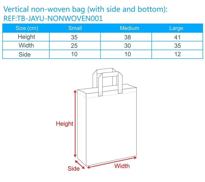 Vertical non-woven bag (with side and bottom):REF:TB-JAYU-NONWOVEN001