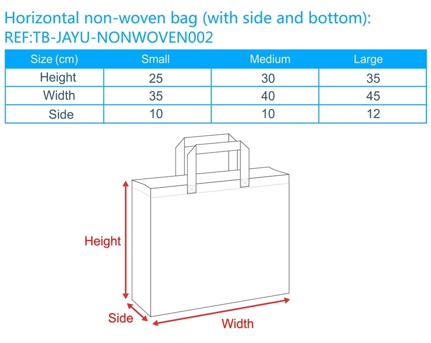 Horizontal non-woven bag (with side and bottom):REF:TB-JAYU-NONWOVEN002