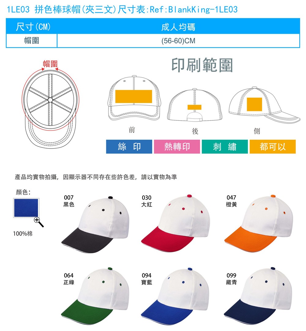 - 拼色: 指帽子採用兩種或以上顏色進行搭配。