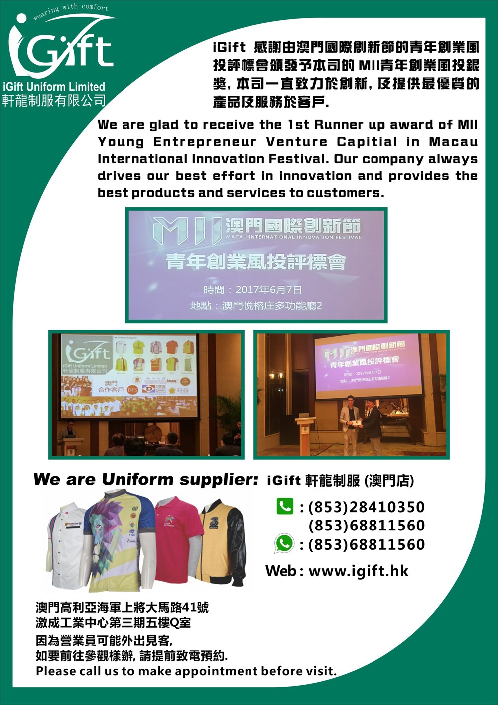 Youth entrepreneurship Award Group uniform company Hong Kong uniform company Macao uniform shop uniform supplier group uniform garment production company