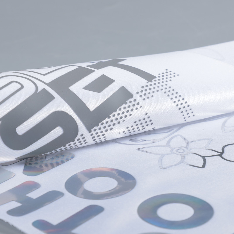 答:金銀燙印是一種特殊的印製工藝,透過高溫高壓將帶有金屬光澤的箔紙(燙金紙)牢固地附著在布料上。與使用油墨的普通印花不同,它的成品具有獨特的金屬鏡面質感和光澤,視覺效果更為高檔奪目。