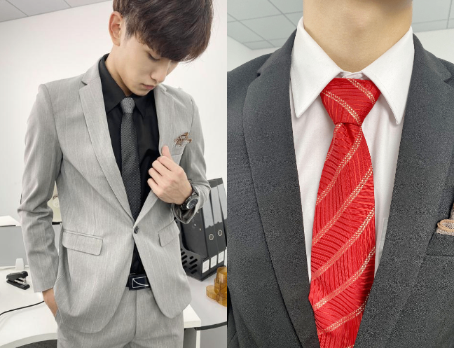 - 身型偏瘦的男士則更適合能拉長視覺比例的窄版領帶。