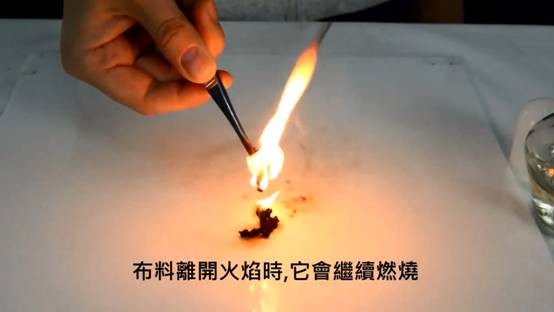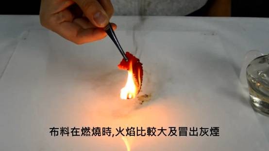 3,布料在燃燒時,火焰比較大及冒出灰煙