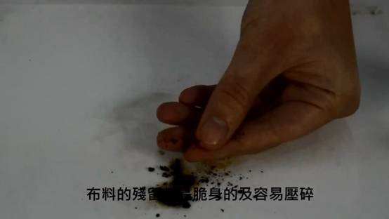 如何分辨布料材質方法 人造毛布料燃燒測試 人造毛布會燒著火焰比較大冒出灰色煙 燃燒殘餘為黑色 而且脆身容易壓碎 iGift 人造毛 100%viscose
