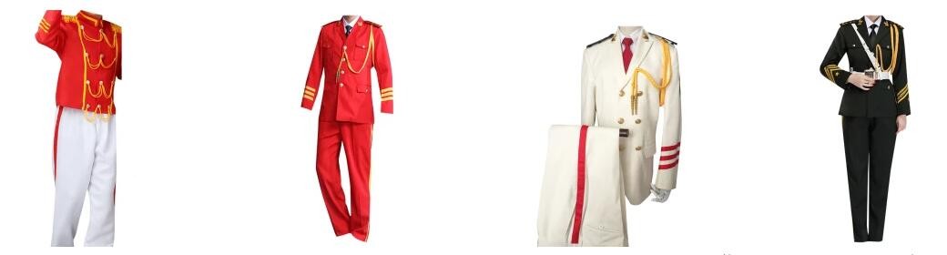 可以在制服的領口、袖口或帽子上加入金色或銀色的裝飾邊條,使服裝更顯隆重和特別。