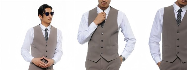 外套搭配背心,即三件式穿搭,包含外套、背心、襯衫。初學者可選擇與西裝外套的對比色,利用色彩對比製造鮮明層次感。如果想購買一件百搭款背心,建議第一次選擇淺灰色背心,不論深色或淺色西裝都能搭配,運用色階變化產生層次感。這樣的搭配既实用又时尚,是职场穿搭的理想选择。