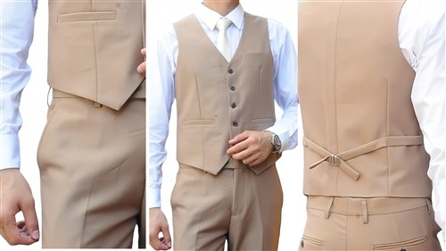 下襬要蓋住褲頭:西裝背心的下擺應該剛好蓋住褲頭,這樣才能保持整體外觀的整潔和協調。
