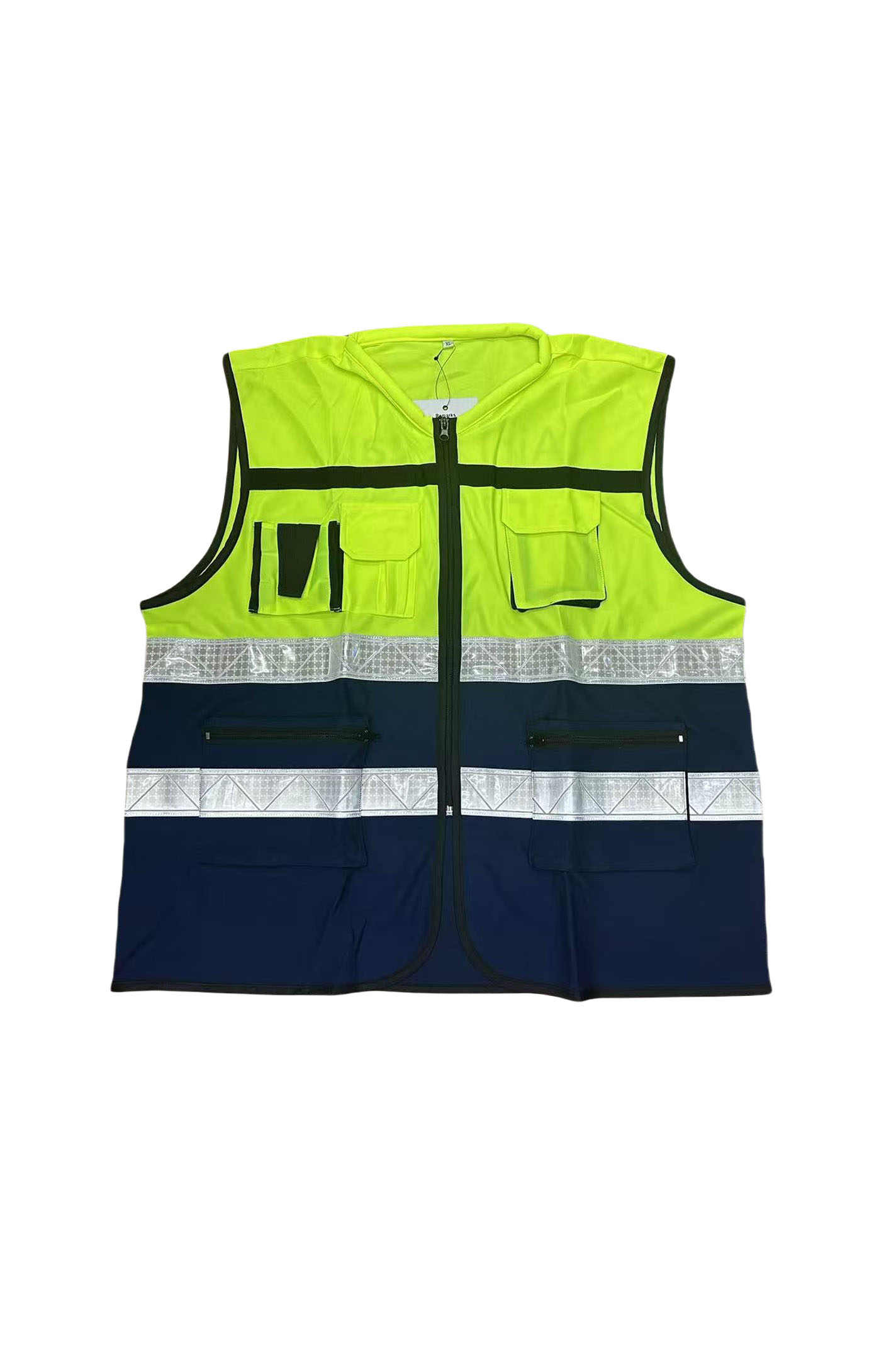 - 高視覺性: 螢光黃色與反光條設計,在光線不足的環境中也能確保穿著者安全可見。