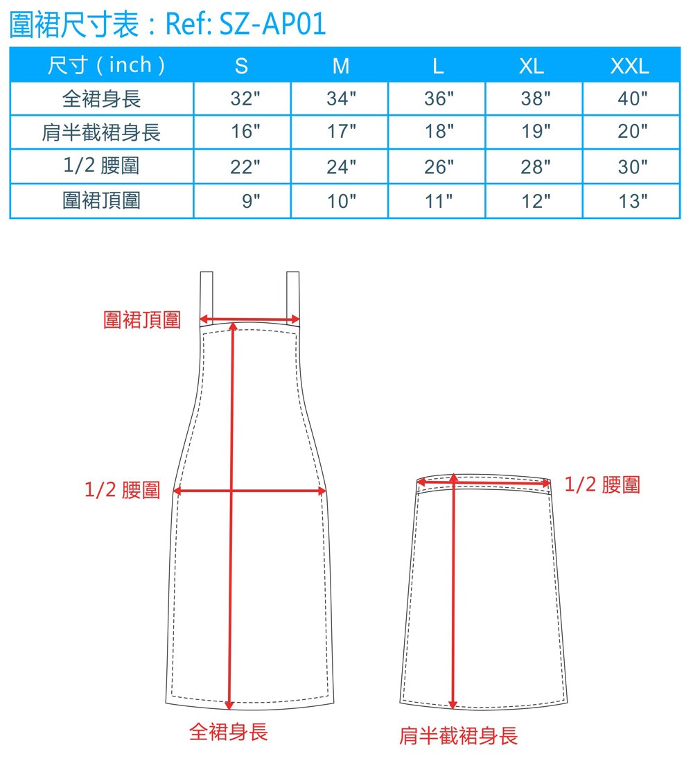 - 訂造LOGO圍裙款式: 可印製您的個人品牌、商標或圖案,提升個性化和識別度。