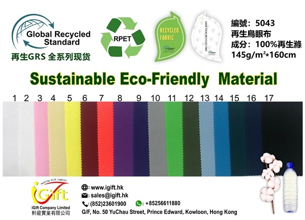 材質:RPET(再生聚對苯二甲酸乙二醇酯)