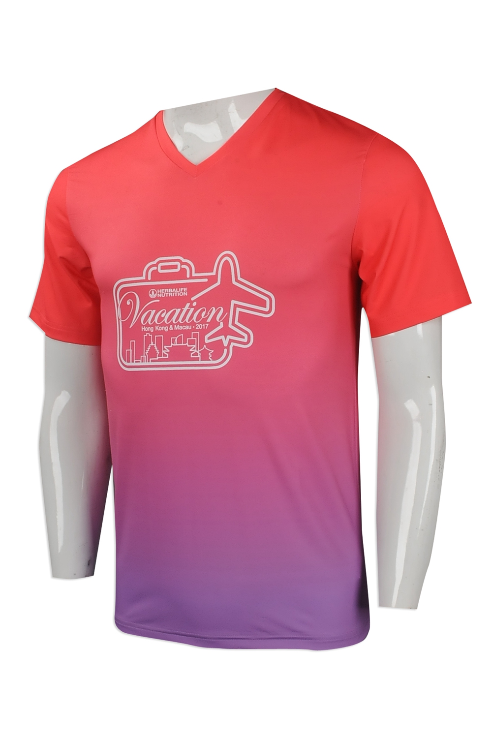 T858 網上訂購男裝短袖T恤 印製男裝v領T恤 漸變顏色 設計男裝短袖T恤生產商 紅色漸變紫色 男生 短 t