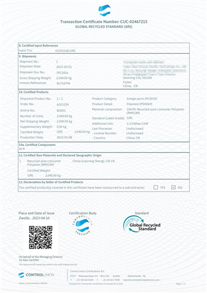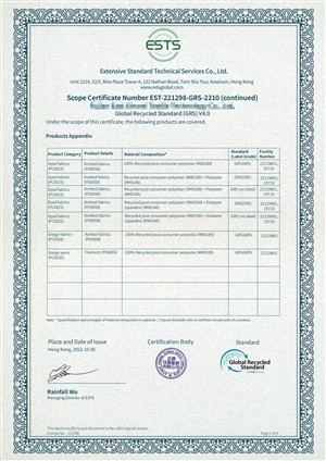 RPET:再生聚酯纖維,由回收的寶特瓶製成。