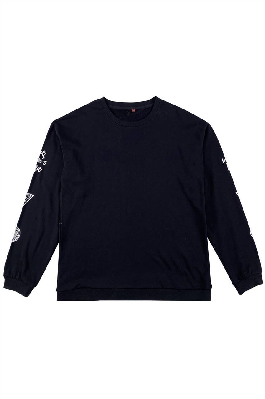 訂製衫袖側邊印花章衛衣 設計黑色圓領衛衣 螺紋領螺紋袖口 創意設計衛衣 冬季保暖衛衣 衛衣供應商 Z656
